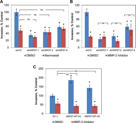 HSP27-driven cell invasion is abrogated by inhibition of MMP-2