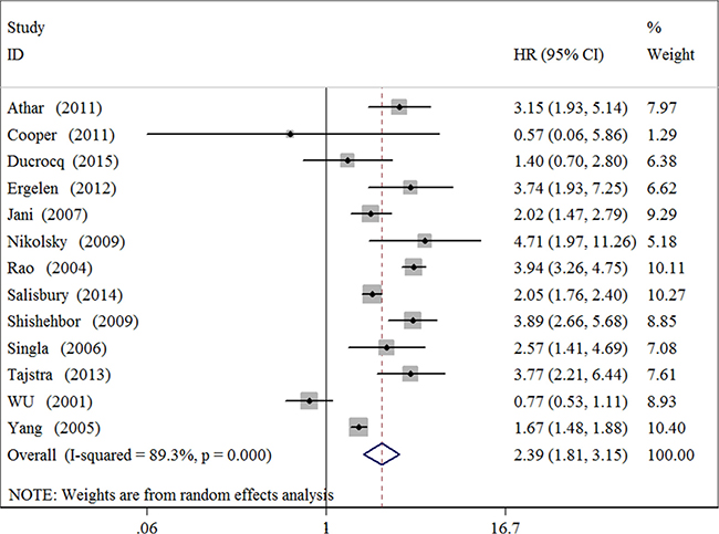 The data for each study were exported to R software version 3.1.2 using the ‘metafor’ package (R Development Core Team 2013) for statistical analysis. Adjusted HRs of each study were combined to compute summary estimates using a random-effects model [28]. Statistical heterogeneity among studies was evaluated by the Cochran Q statistic and quantified with the I2 statistic with an I2 > 50 % suggesting significant heterogeneity [29]. Finally, publication bias was evaluated through visual inspection of funnel plot asymmetry as well as by the Begg’s and Egger’s regression tests [30, 31]. Sensitivity analyses were performed by omitting each study at one time and recalculating the others to explore whether the combined estimates altered substantially by any one of the omitted study . Sensitivity analysis was also performed by using Duval’s nonparametric trim-and-fill method to assess the potential influence of publication bias [32].