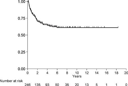 In our study, RFS was associated with baseline stage (p = 0.03), tumor grade (p = 0.01), p/yp stage (p < 0.001), % residual GAC (p = 0.01), R margin (p = 0.01), and total gastrectomy (p = 0.03). This is in agreement with observations by several other investigators [13, 20–22]. Relatively few studies have examined timing of relapse in GAC [12, 14, 20]. Similar with our study, others have noted that the majority of relapses occur within 2–3 years.