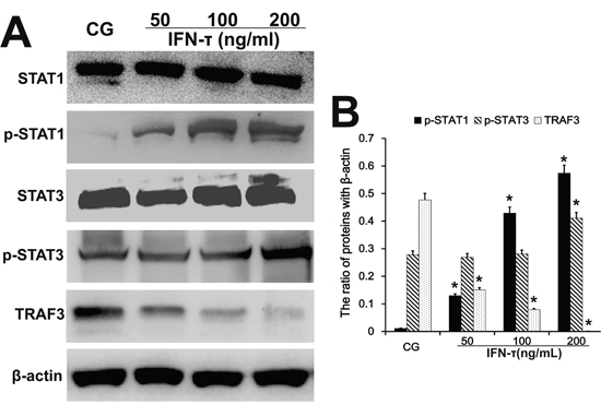 Effect of IFN-τ on TRAF3, STAT1, and STAT3 expression in EECs