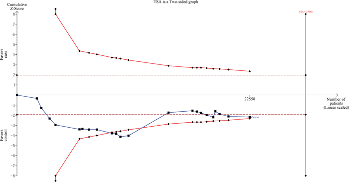 As shown in Figure 4, we observed that the cumulative z-curve crossed the monitoring boundary before reaching the required sample size, indicating the sample size was sufficient and no further investigation was needed to verify the results.