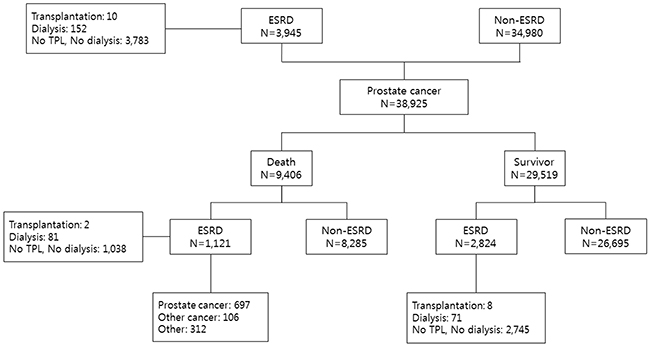 Figure 1: Study flow chart. ESRD, end-stage renal disease; TPL, transplantation; Ca, cancer.