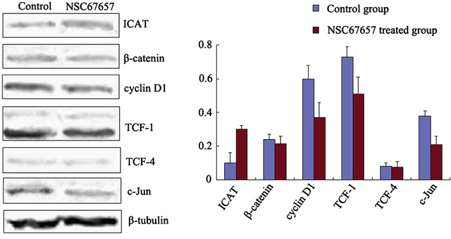 NSC67657 increases ICAT expression, but inhibits Wnt signaling protein levels