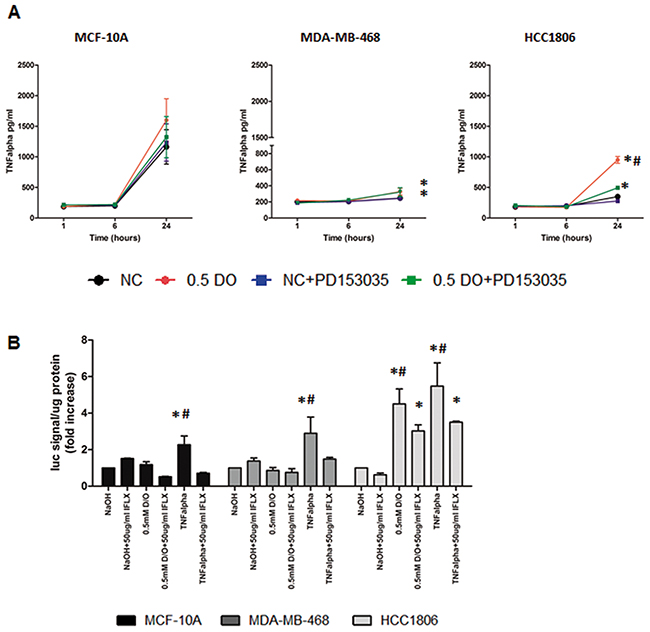 Herein, we demonstrate that iNOS is associated with poor outcome in TNBC patients (n=209). We demonstrate that in BL2 TNBC, NO activation of the EGFR/ERK signaling pathway plays a direct role in the development of a pro-inflammatory phenotype that increases tumor cell invasive capacity. These results highlight a novel mechanism that may explain the observation that TNBC patients expressing iNOS display a worse prognosis. Additionally, these results highlight the potential of iNOS and EGFR as targets for consideration in the development of novel treatments for basal-like TNBC.