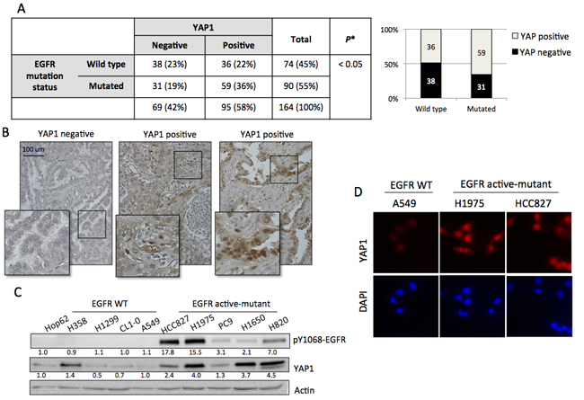 YAP1 expression correlates to EGFR active mutation