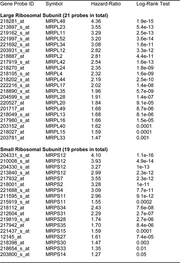 Table 4: Prognostic Value of Mitochondrial Ribosomal Proteins