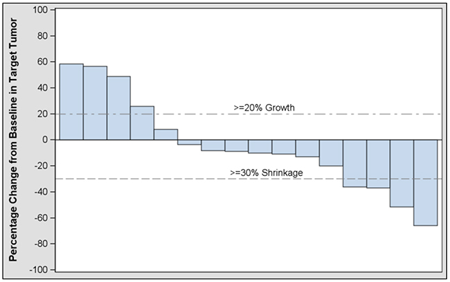 The study enrolled 24 subjects between September 2011 and May 2012. Enrollment was concluded after Stage 1, as independent assessment showed that among the first 21 subjects, fewer than 3 had a confirmed response.