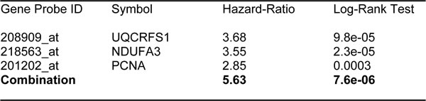 Table 9: Prognostic value of ovarian mitochondrial signature 3