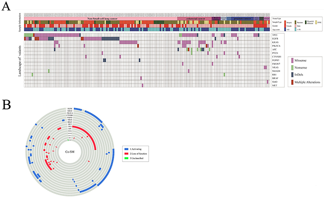 In conclusion, our study demonstrated that tumor genetic profiling varied significantly among different tumor and sample types. However, Co-SM in multiple driver genes with different modes of action were frequently detected in solid tumor tissues and correlated with lymph node metastasis, pathological typing, and clinical response in NSCLC. The coordinating network among driver genes is playing more vital roles in carcinogenesis than individual driver genes. However, enlarging the sample size of this study will provide more evidences to elucidate further the interaction among multiple genes during carcinogenesis and progression.