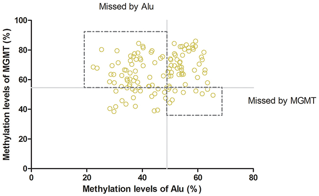 Figure 3: Combination of Alu and MGMT: Combination of Alu and MGMTcould improve the rate of diagnosis.