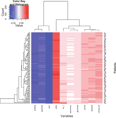 This was a single center, randomized, phase II trial which enrolled 198 patients with T2-4 N0-1 primary breast cancer, from January 2002 to November 2005. The trial was constituted of four treatment arms: Epirubicin 120 mg/m2/1-21 (66 patients) (EPI ARM), Epirubicin ARM 120 mg/m2/1-21 + erythropoietin (epoetin) alfa 10.000 IU sc three times weekly (57 patients) (EPI-EPO ARM), Epirubicin 40 mg/m2/w-q21 (62 patients) (EPI-WARM) and Epirubicin 40 mg/m2/w-q21+ erythropoietin (epoetin) alfa 10.000 IU three times weekly (13 patients) (EPI-EPO-W ARM). In the EPI-EPO arm erythropoietin was systematically administered when haemoglobin dropped below 12.0 g/dl during treatment. The authors originally planned to administer four cycles in all treatment arms but the EPI-EPO-W ARM was stopped early (and not included in the analysis) due to the high rate of patients’ refusal to self-administer erythropoietin (epoetin) alfa. Thus, the patients originally assigned to this arm were randomly reallocated to the other arms. In order to avoid bias, it was decided to exclude the 13 patients allocated in the EPI-EPO-W ARM from the analysis, therefore decreasing the sample size to 185 patients in total. In 9 patients, the response indicator was unavailable for technical reasons and thus these patients were also excluded from the analysis. Hence, the final sample-size was composed of 176 patients. Patients’ characteristics are shown in Table 1.