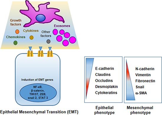 In these last years, research studies on mechanisms underlying tumor progression and acquisition of pre-metastatic phenotype have demonstrated well that MSCs actively participate in inducing oncogenic EMT (Figure 2) [81, 82].