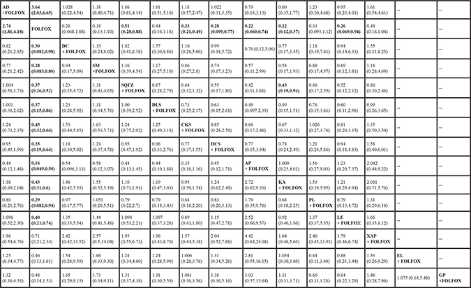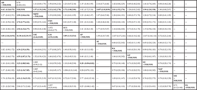 Table 4: SUCRA values of 15 CHIs groups and FOLFOX group for 5 outcomes