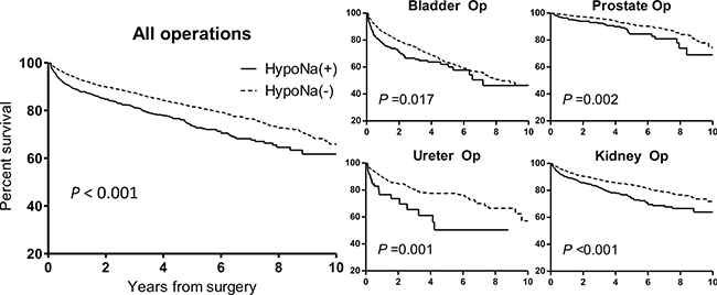 Hyponatremia is the most common electrolyte imbalance in hospitalized patients [1, 2]. Previous studies have shown a close relationship between in-hospital hyponatremia and adverse clinical outcomes [2–6]. As surgery was found to be one of the main causes of in-hospital hyponatremia, some have investigated the clinical significance of postoperative hyponatremia in several fields, including neurosurgery, orthopedic operations, and urologic surgeries [3–5, 7–9]. However, recent studies considering electrolyte imbalance in urologic surgery have focused on the classic concept of transurethral-resection of prostate (TUR-P) syndrome [7, 8], although advances in technique have significantly decreased its incidence [10]. Hence, incidence and risk factors for postoperative hyponatremia in recent major urologic surgery need further investigation.