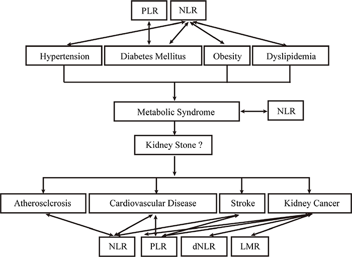 Several results showed that inflammation plays a significant part in the initial stage and progression of kidney stones [2]. Besides local inflammatory diseases, a portion of patients with cancers can appear systemic inflammatory responses, which are characterized by changes of peripheral blood cell counts. Therefore, several circulating blood cell-based biomarkers including: neutrophil to lymphocyte ratio (NLR), derived neutrophil to lymphocyte ratio (dNLR), [3] platelet to lymphocyte ratio (PLR) and lymphocyte to monocyte ratio (LMR) - were used to predict diagnosis and prognosis in various diseases. These markers can be readily calculated from routine complete blood counts from peripheral blood specimens in the clinical practice. Furthermore, they are routinely measured and inexpensive to test, and hence potentially provide readily available objective information to help doctors to estimate patient progression.