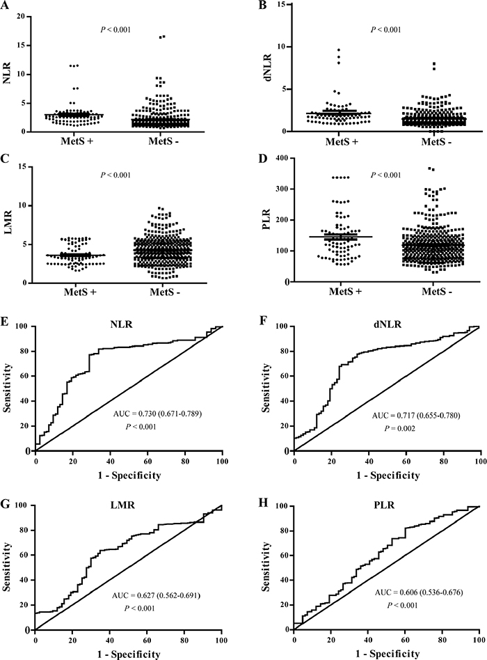 We hypothesized the elevated NLR in patients with kidney stone, especially for patients with MetS comorbidities, and could play as a potential predictor of post-PCNL SIRS. However, the association between kidney stone and preoperative inflammatory response biomarkers, such as NLR, dNLR, LMR and PLR still remained unknown. The current research thus aimed to evaluate the clinical significance of the NLR, dNLR, LMR and PLR for detecting MetS, SIRS and to determine whether these biomarkers could serve as a predictor for MetS comorbidities and post-PCNL SIRS in patients with kidney stones.