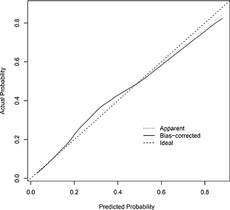 Figure 4: Calibration plot of the nomogram for the probability of L-2-ALNM.