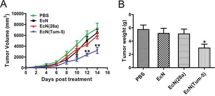 EcN specifically colonized and delivered Tum-5 to solid tumors