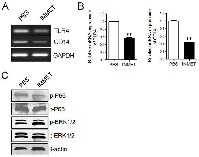 Immethridine inhibited the expression of TLR4/CD14 and phosphorylation of NF-κB p65