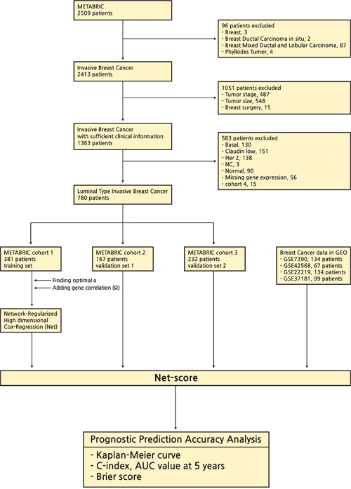 The authors wish to thank the METABRIC principal investigators for the data used in this work. The authors would like to thank Sun H for developing Network-regularized high dimensional Cox regression and Eun Hak Kim (Design Studio) for drawing Figure 1.