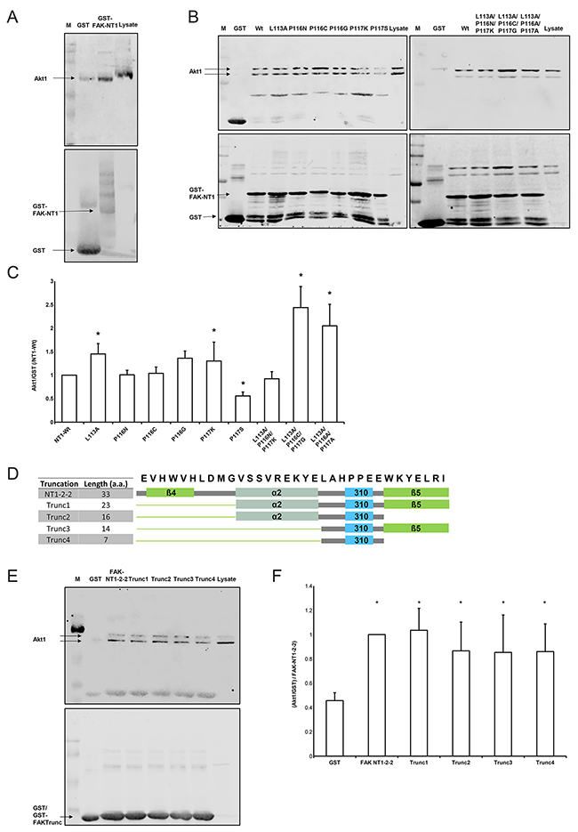 GST-FAK fusion proteins pull-down purified and endogenous Akt1, is modulated by mutations, and persists in NT1-2-2 truncations