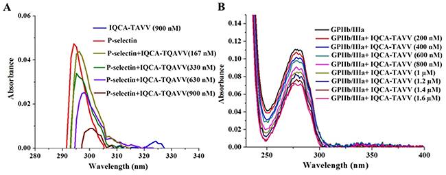 Effect of IQCA-TAVV on the UV spectra of P-selectin and GPIIb/IIIa