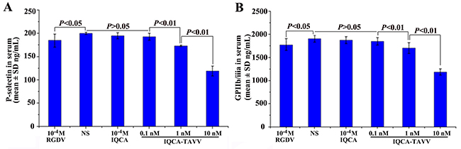 Effect of IQCA-TAVV on the expression of P-selectin and GPIIb/IIIa