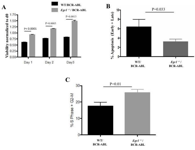 Egr1 deficiency is associated with decreased apoptosis, and increased cell viability and proliferation in response to BCR-ABL