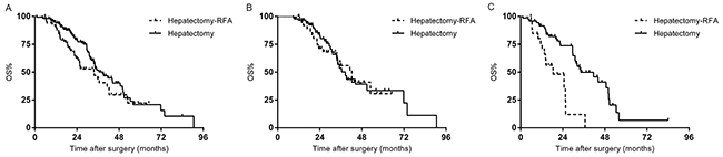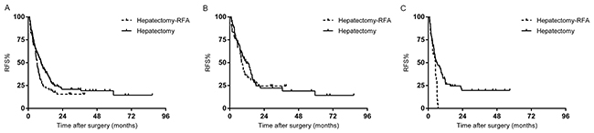 This study had some limitations. First, it was a retrospective study with relatively small sample size. Second, operations were performed by different surgeons, with their own criteria regarding patients selection for resection or hepatectomy-RFA. What’s more, some lesions judged to be unresectable in the past may now be treated by resection alone, with improved surgical techniques and skills, which may result in selection bias. Furthermore, only patients with no extrahepatic disease were eligible for the current study and these represent only a proportion of patients with CRLM. Last but not least, preoperative chemotherapy regimen was not standardized and this is also a major source of bias.