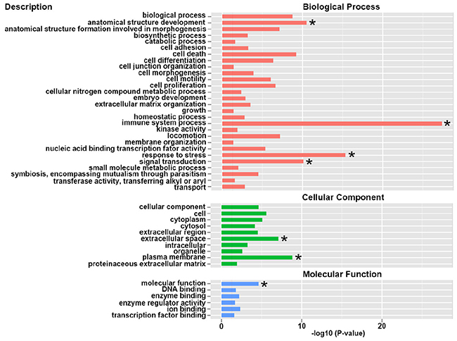 Figure 2: Gene Ontology (GO) enrichment analysis of differential expressed genes. GO terms assigned to biological process, cellular component and molecular functions.