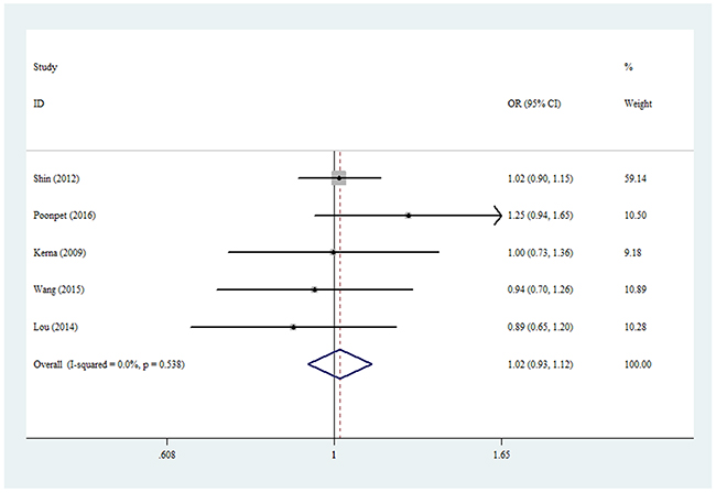 Two of the authors independently extracted all data and ensured that they complied with the selection criteria. The following information was obtained: first author’s last name, year of publication, country of origin, ethnicity, total and each genotype number in case/control group, source of controls, HWE of controls, sex data, and genotyping methods. Ethnicity was categorized as Caucasian or Asian. The control subgroups were population-based and hospital-based, and the sex subgroup was classified by male and female
