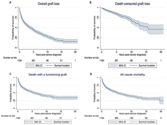 The primary outcomes of this study included overall graft loss and DCGL. Secondary outcomes included death with a functioning graft, all-cause mortality and cancer-specific mortality.