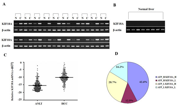 AFP levels have been widely used for diagnosis as well as surveillance of HCC. However, the sensitivity and specificity of AFP levels for HCC surveillance have some shortcomings [15], because AFP levels may be normal in up to 40% of patients with HCC, particularly during the early stages of HCC. Therefore, it is urgent to identify some factors affecting the survival of HCC patients, including conventional clinicopathological variables and novel molecular markers [16]. Our study suggested KIF18A might be a novel biomarker for HCC pathological diagnosis. If use both of AFP and KIF18A as biomarkers, the diagnostic positive ratio of HCC patients could be improved dramatically.