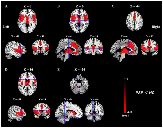 Against this background, we aimed to conduct an updated meta-analysis based on 18 whole-brain VBM studies in PSP using a modified Seed-based d Mapping (SDM) approach to obtain more accurate results. In addition, analyses of jackknife sensitivity, heterogeneity, publication bias and meta-regression were comprehensively performed to examine the robustness and replicability of GM abnormalities associated with PSP.