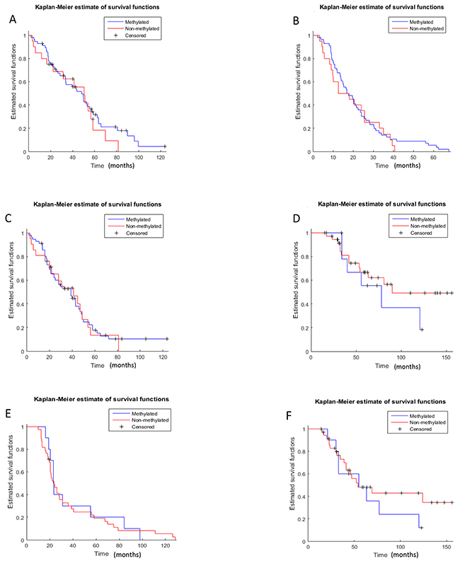 Association between clinical data [Fédération Internationale de Gynécologie et d’Obstétrique (FIGO), TNM] and methylation status, corrected for disease status (primary or recurrence), was assessed using binomial logistic regression. The survival and hazard functions were estimated by Kaplan-Meier estimator and the log-rank test, respectively. Analyses were performed in Matlab R2015a (The Mathworks). An alpha level of 0.05 was employed for rejecting the null-hypothesis.