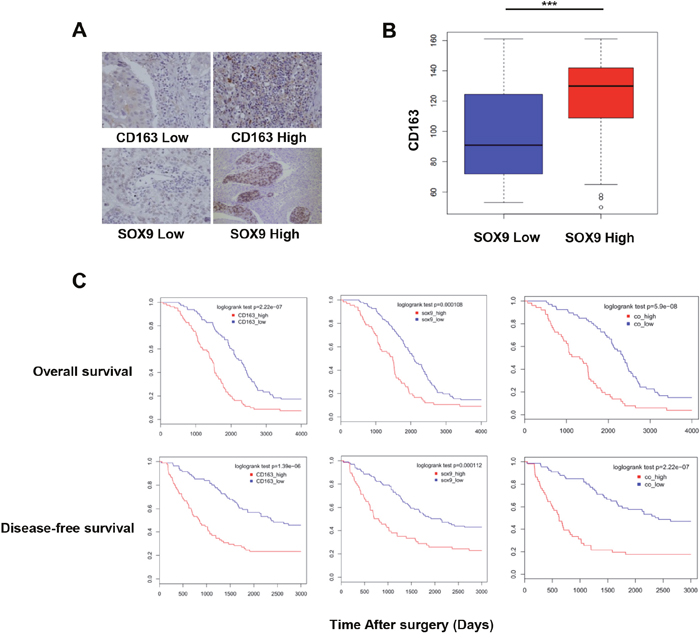 Co-expression of CD163 and SOX9 is correlated with worse patient outcomes