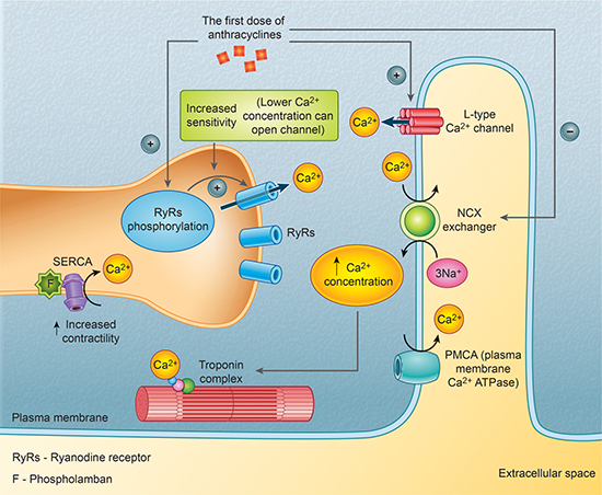 Figure 2: The first dose of anthracyclines’ influence on calcium channels.