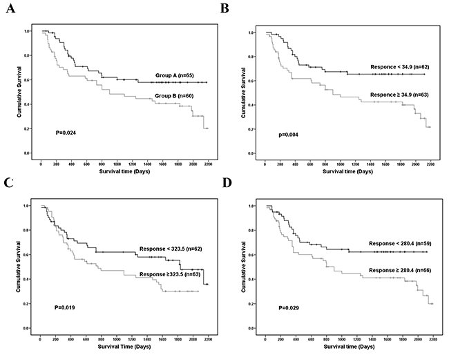 All the 125 GC patients were clustered into serum metabolites selected from the PLS-DA analysis, and differences in clinicopathological parameters like tumor differentiation, age, vascular invasion, TNM staging, survival rate, levels of Ki-67 and P53 and tumor position and expression were observed among the subgroups by chi-square test or variance analysis. The Kaplan-Meier (K-M) survival curve of each group was plotted based on different thresholds of sensitivity and specificity of survival time in order to find the most potential serum biomarkers for GC. Finally, multivariate COX regression analysis, variance analysis and K-M survival curve were used to find the independent prognostic factor for GC in human serum. All the statistical significance was set to be p< 0.05.