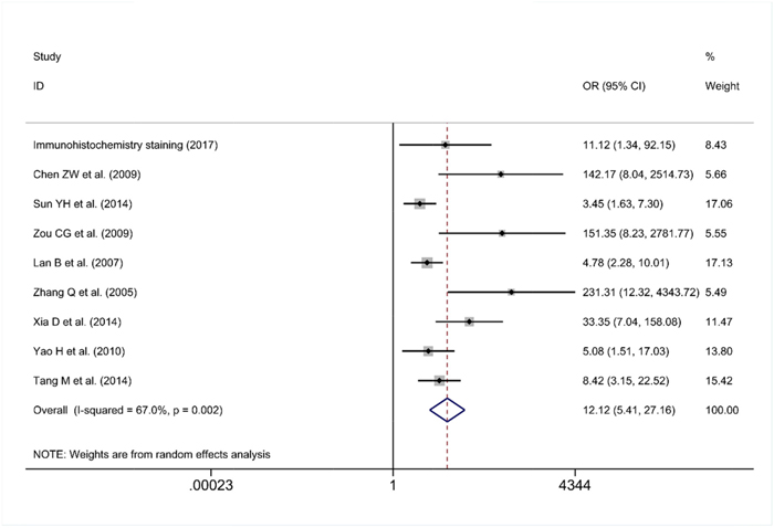 All eligible published studies were required to match the criteria listed below: (1) diagnosis of GC was confirmed pathologically; (2) the clinical value of the PLK1 in GC patients was reported; (3) the study was original; (4) an OR with 95% confidence interval (CI) of clinicopathological parameter or a HR and their 95% confidence intervals (CIs) could be obtained from the article directly or estimated based on the information in the paper sufficiently; and (5) studies were published as a full-text paper in English or Chinese, although no language restrictions were imposed initially.