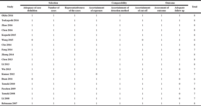 Table 3: Quality assessment of eligible studies (Newcastle-Ottawa scale)