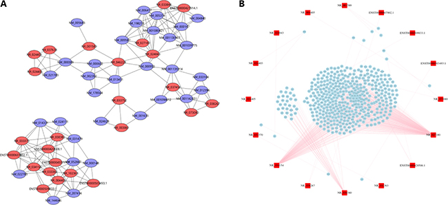 The co-expression network was constructed between significantly dysregulated lncRNAs and mRNAs. Considering the influence of random factors, we found that only using Pearson correlation coefficients (PCC) is not strict, so we calculate zscore values and then obtain P values. The co-expressed lncRNAs and mRNAs pairs with |COR| > 0.85 and P < 0.05 were selected to draw the network. By selecting specific lncRNAs from dysregulated lncRNAs, we mapped the network graphs that interact with their target genes, providing a reference and help for the holistic analysis the function of lncRNAs in the samples.