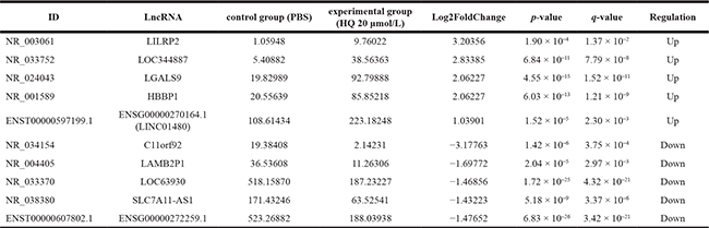 Table 2: The five statistically significantly up- and down-regulated lncRNAs