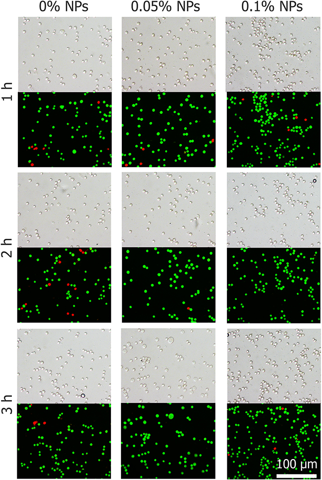 Figure 2: Cell morphology and viability of HepG2 cells exposed to nanoparticles after 1, 2 and 3 h.