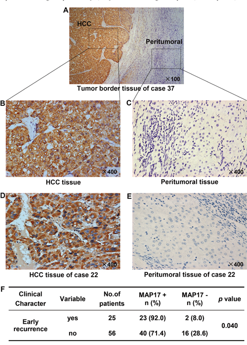 MAP17 expression was up-regulated in HCC tissues