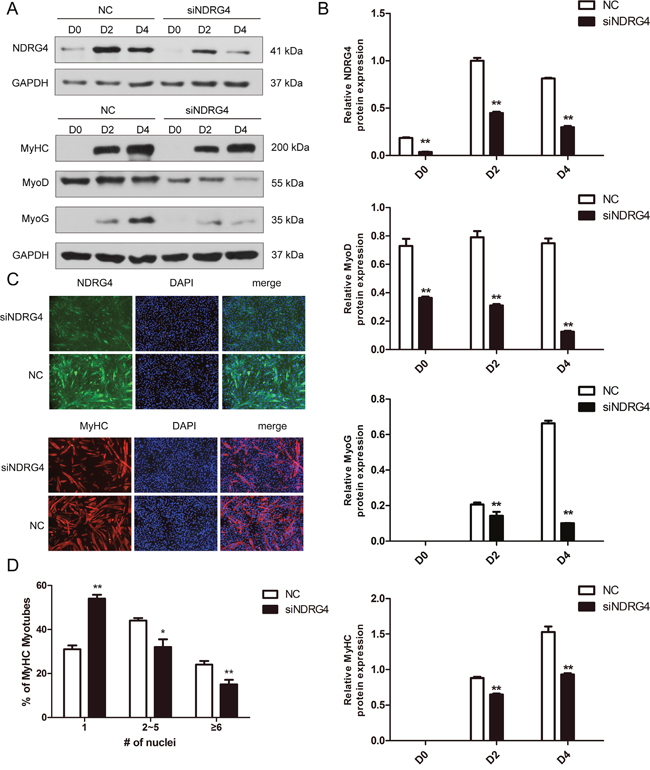 Knockdown of NDRG4 inhibits myogenic differentiation