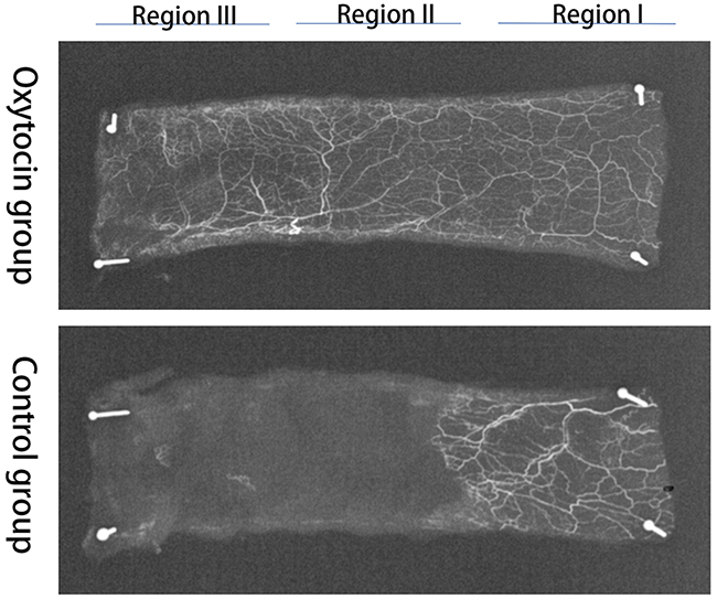 Recent studies have shown that subcutaneous OT did not bind to any receptor in the flaps [35]. However, exogenous OT can cross the blood–brain barrier [36]. Thus, subcutaneous OT may enter the brain, trigger the brain OT receptor, and thus protect against skin flap injury caused by ischemia–reperfusion.