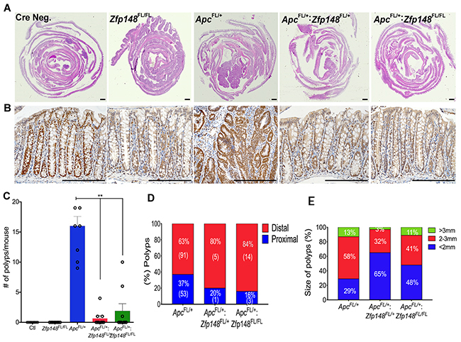 Zfp148 deletion reduces tumorigenesis in Cdx2: ApcFL/+ mouse colon