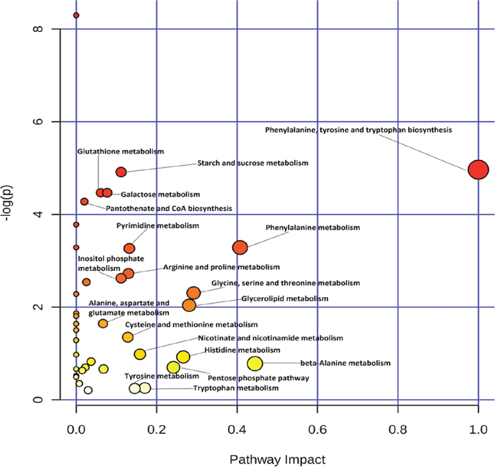 Figure 5: Pathway analysis of differential metabolites identified in red blood cells of cows from the control and gossypol-treated groups using MetaboAnalyst 3.0.