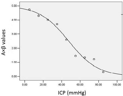 Using SPSS 19.0, for values of p<0.05, the goodness-of-fit of the correlation was analyzed, and the most accurate regression curve was selected to generate the images (Figure 2) and equations below: ICP = 5.13 - 0.93 × t + 0.10 × t2 - 1.80 × t3. The results indicated that the dependence of ICP on time followed a cubic power law.