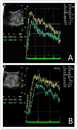 Image analysis software for contrast echocardiography was used to analyze the images. According to the exponential equation Y = A × (1 - e-βt), the relationship between the video intensity of the ROI and the perfusion time of the contrast agent was plotted. CEU parameters, including the A, β, and A×β values, were automatically provided; A is the maximum number of contrast agent microbubbles that can accumulate in the regional tissue, β is the filling speed of contrast agent microbubbles in the regional tissue, and A×β refers to the volume of the regional blood flow.